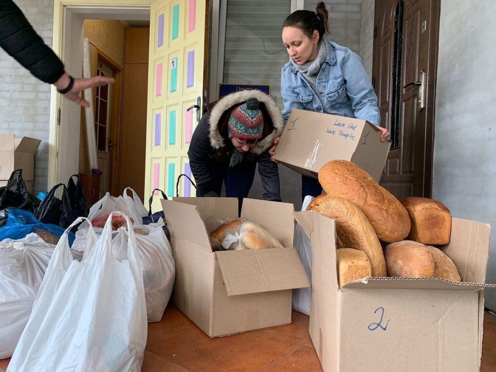 Dom 7 som fortfarande arbetar på barnhemmet får leveranser med mat. Dom kämpar vidare med att förse familjer, barn och äldre med mat. Köerna ringlar sig långa utanför.