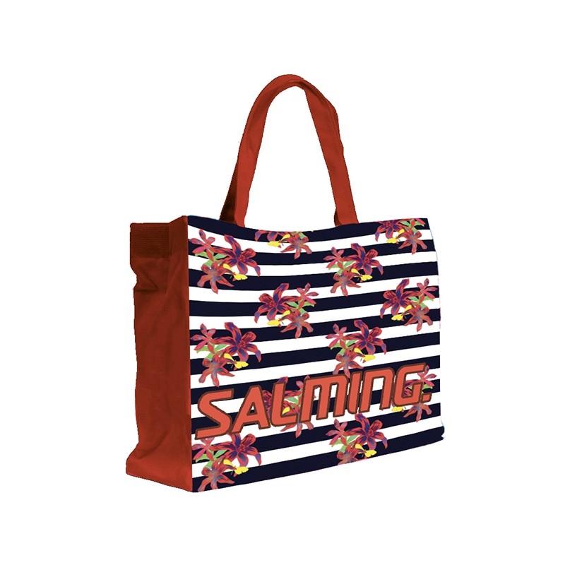 Snygg beachbag, med svart vit randigt mönster och snygga blommor. Perfekt att ha med sig till beachen för en lat dag på stranden