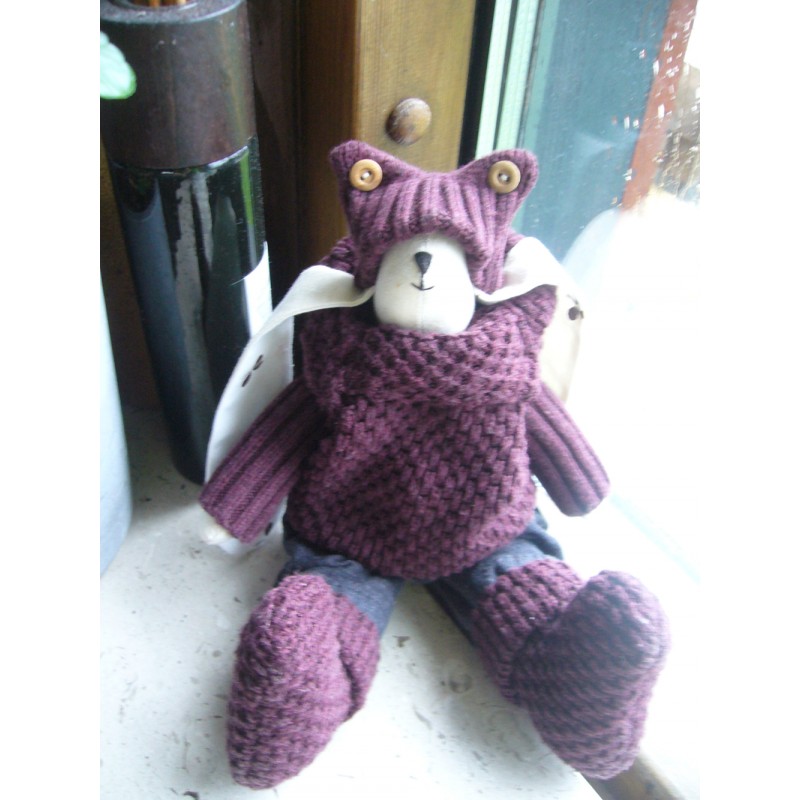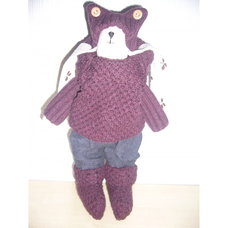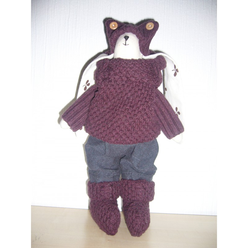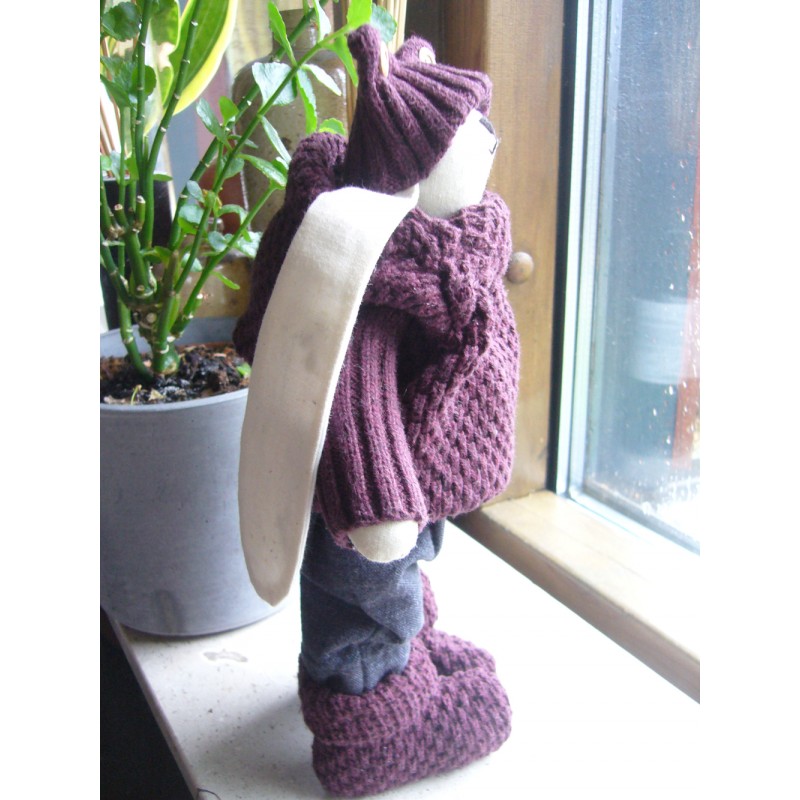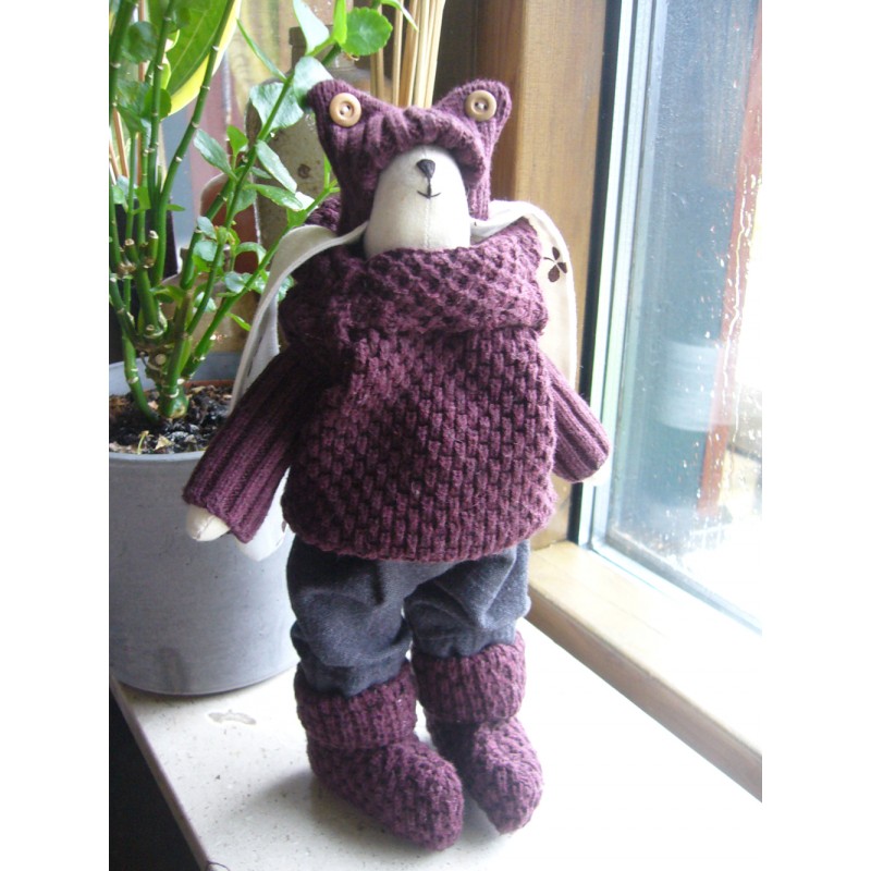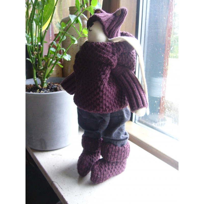 Tilda No.2 är hela 28cm lång och går i vinrött och grått, vinröd mössa med träknappar.